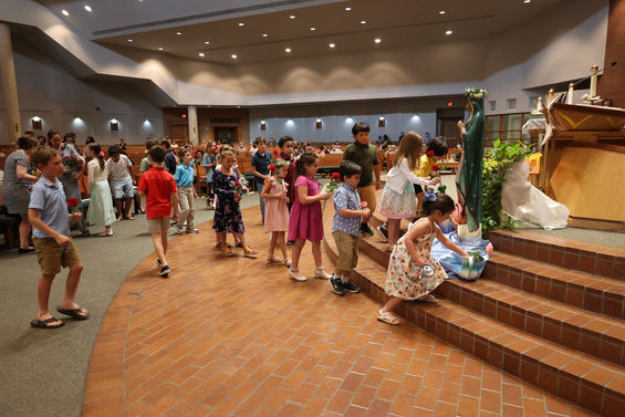 Elementary faith formation students participated in reciting the rosary in front of Our Blessed Mother on Saturday, May 7 prior to the 5:00 PM Mass. They were joined by The Knights of Columbus Council 7613 to amplify their voices. Following the Rosary, the children crowned Our Blessed Mother.